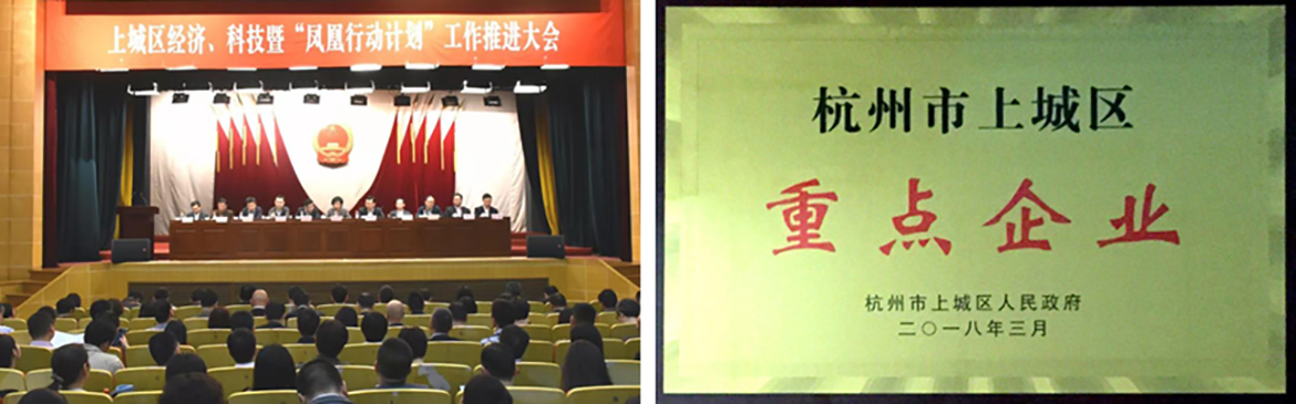 在大会上,上城区政府领导对上城区重点企业进行了表彰并授予奖牌,浙江博世华环保科技有限公司喜获2017年度杭州市上城区重点企业。