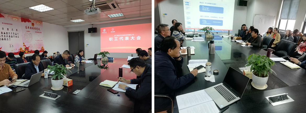 11月12日上午9时,浙江博世华环保科技有限公司职工代表大会在第一会议室正式开幕。公司共有职工代表25名,今天共有25名职工代表(6人委托)参加了会议、3位非职工代表列席了会议。会议审议表决了公司新制订的企业年金方案(实施细则)、行政人事、财务管理、公司年度奖励管理办法等规章制度。