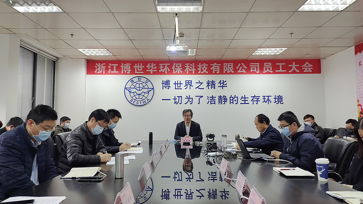 玉鼠呈欢辞旧岁,金牛跃起迎新年。2021年2月5日上午,浙江博世华环保科技有限公司2020年度员工大会顺利举行。本次大会为了更好地落实疫情防控工作,积极响应政府的防疫管控措施,大会采用钉钉视频直播的形式召开,公司常务副总经理谢文岳主持了本次会议并代表公司做了2020年度工作报告。